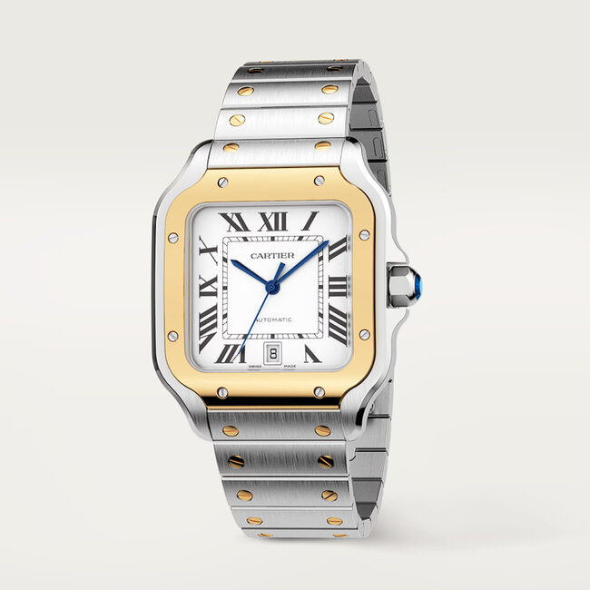 Santos watch, large model, mechanical movement with automatic winding, caliber 1847 MC. Steel case and yellow gold 750/1000